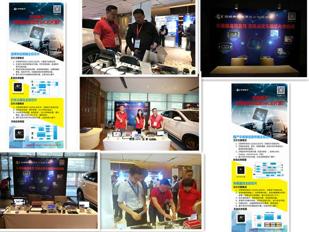 会场外展厅,珠海光远旅游电子商务有限公司展示了自主研发的车载信息终端主控芯片和样机、wifi/4G/隐藏式行车记录仪主控芯片和样机、流媒体后视镜主控芯片和样机、4路监控主控芯片和样机、数字仪表主控芯片和样机等,引起了车企、方案商、Tier1厂、投资机构等的广泛关注。