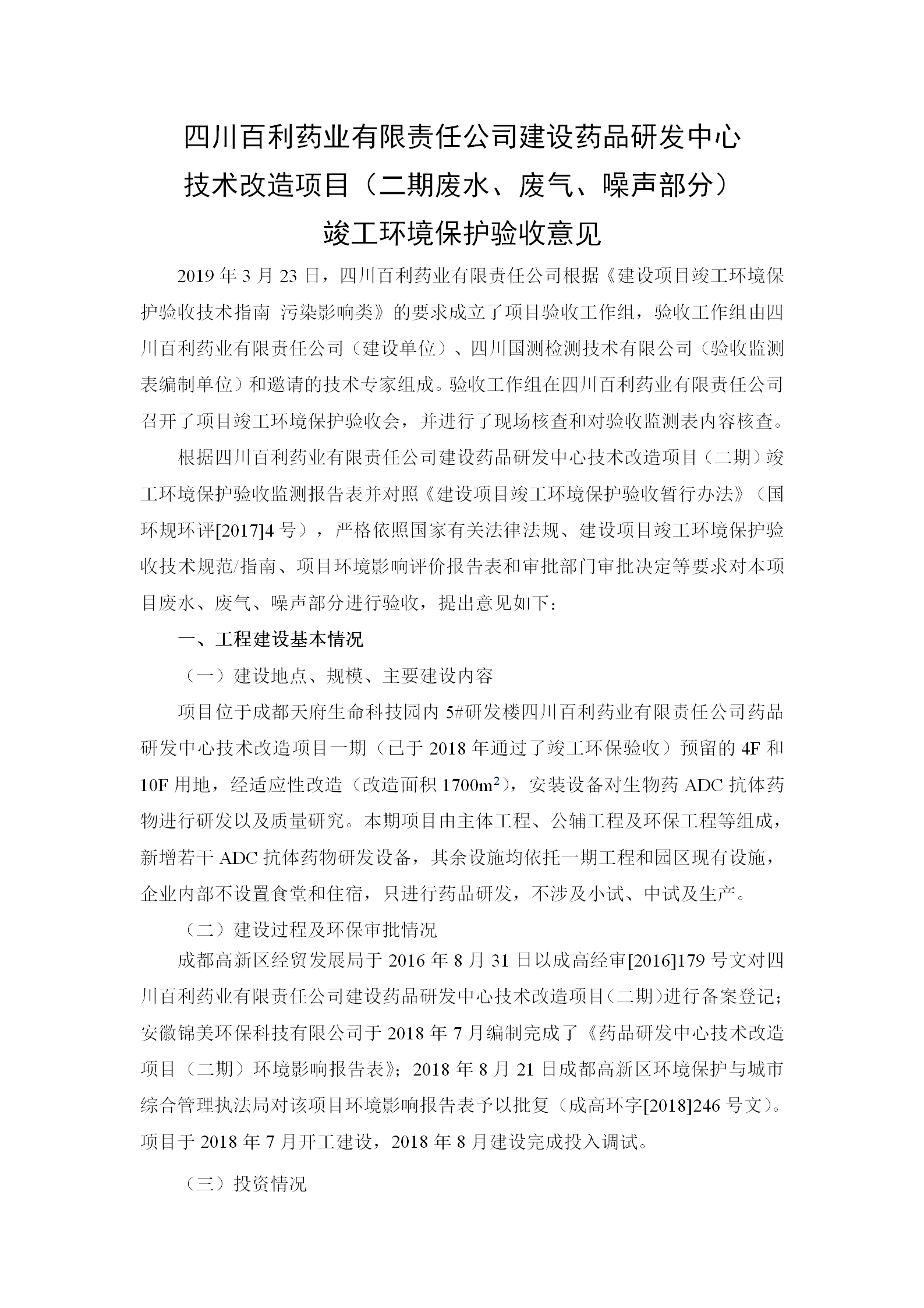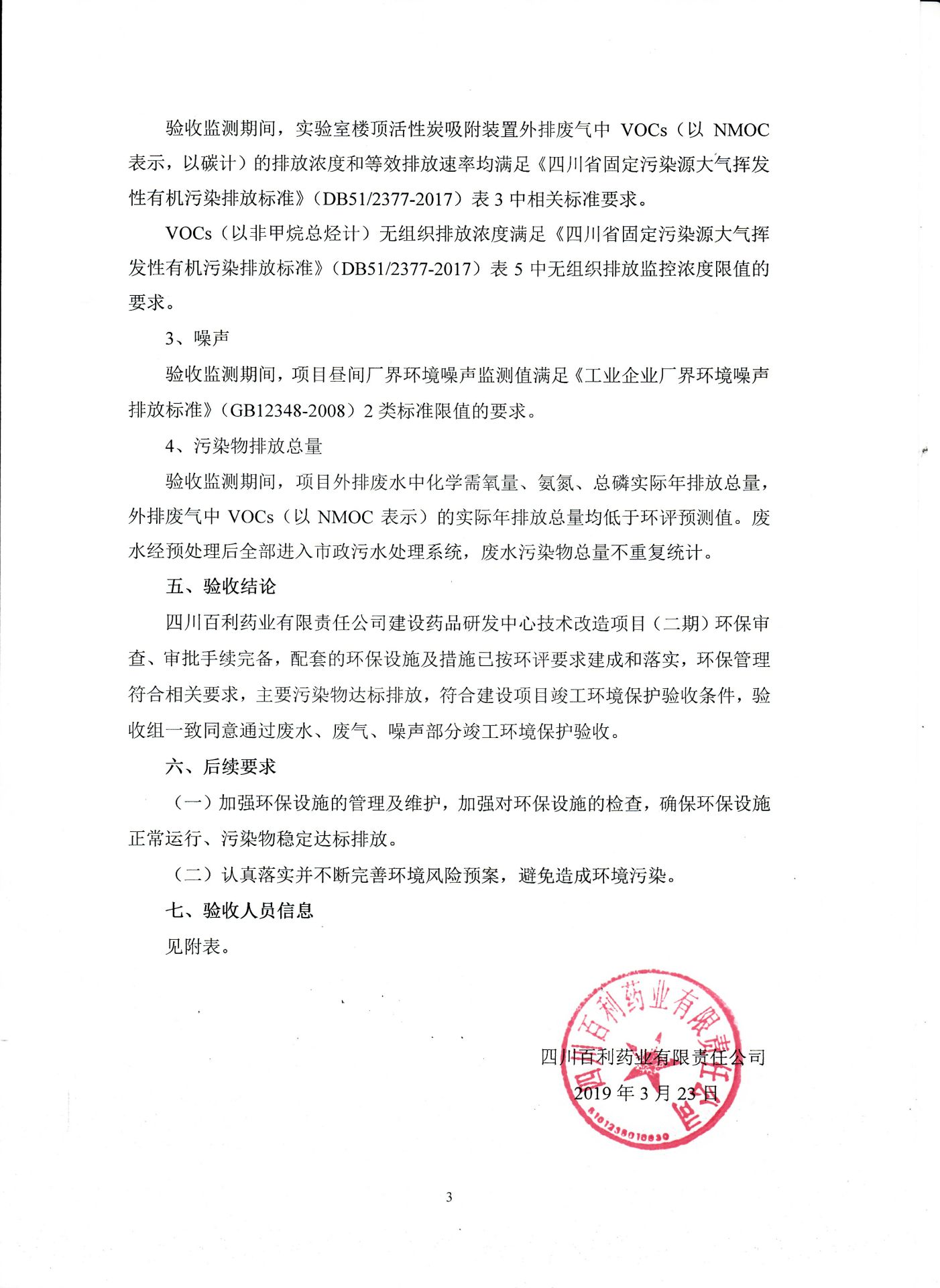 根据《国务院关于建设项目竣工环境保护管理条例的决定》以及环保部《建设项目竣工环境保护验收暂行办法》的公告(国环规环评[2017]4号)现将《四川九游·官方J9站网站入口-Jiuyou j9(中国)有限责任公司药品研发中心技术改造项目(二期)竣工环保验收监测报告》及验收意见公示如下: